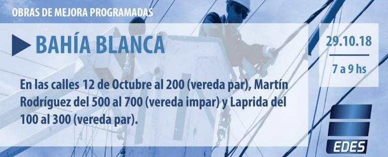 La empresa EDES anunció un corte de energía para este lunes 29 de octubre, por tareas de mejoras y mantenimiento.