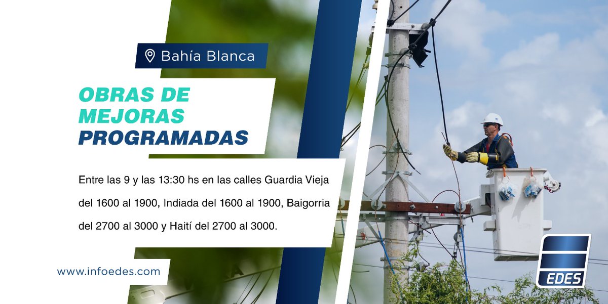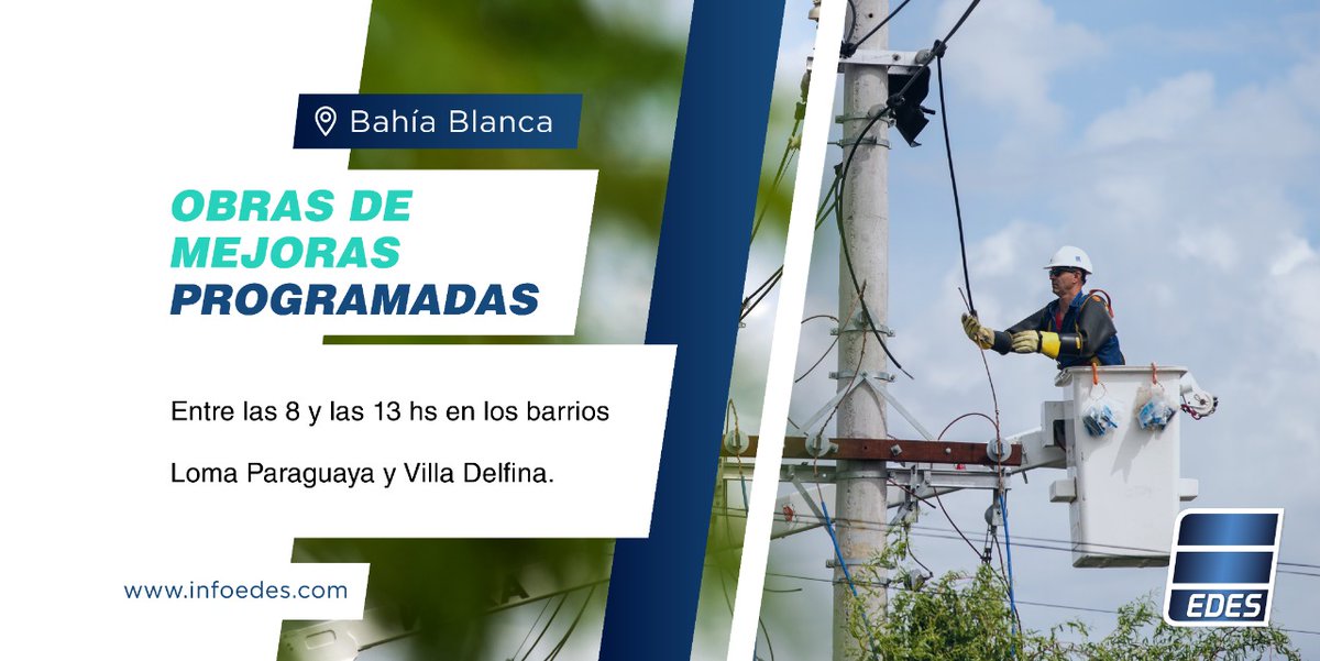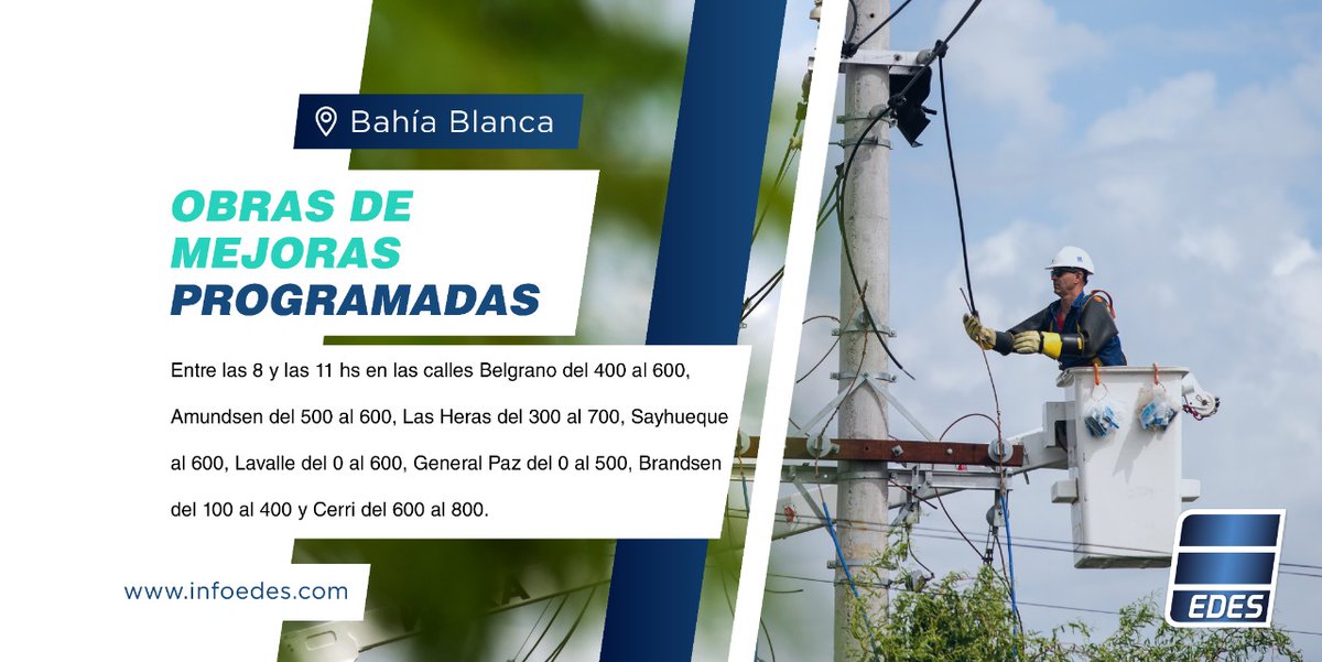 La empresa EDES anunció varios cortes de energía para este martes en Bahía Blanca, por tareas de mejoras y mantenimiento.