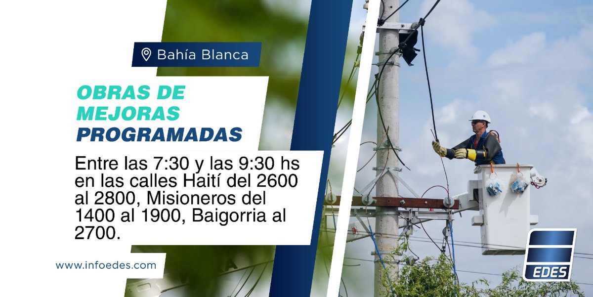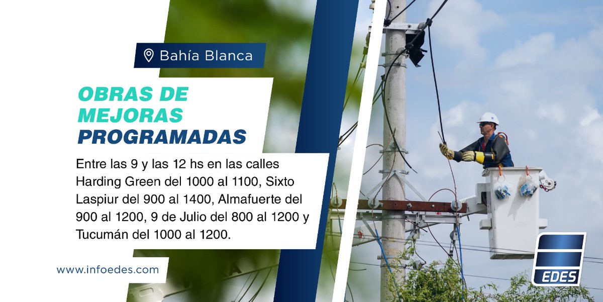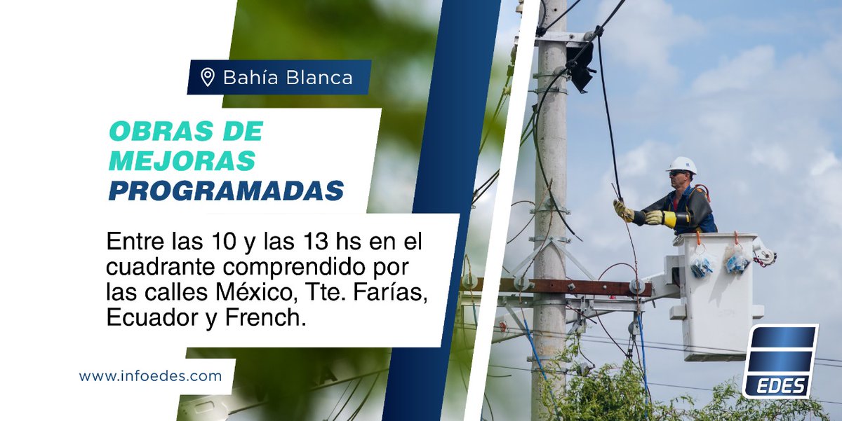 La empresa EDES anunció varios cortes de energía para este martes, por tareas de mejoras y mantenimiento.