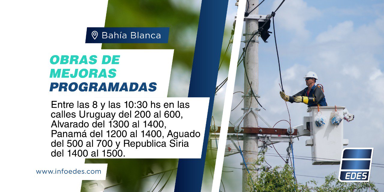La empresa Edes anunció varios cortes de energía para este martes, por tareas de mejoras y mantenimiento.