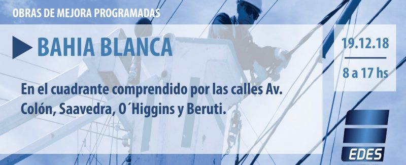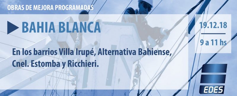 La empresa EDES anunció que hoy realizará cortes de energía en distintos cortes de energía, por tareas de mejoras y mantenimiento.