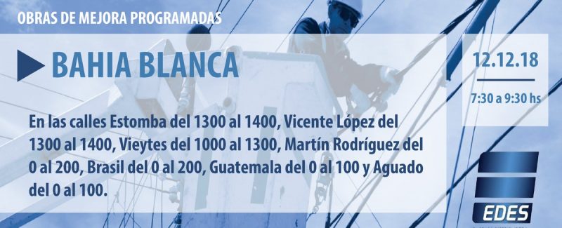 La empresa EDES anunció que este miércoles realizará cinco cortes de energía, por tareas de mantenimiento y mejoras.