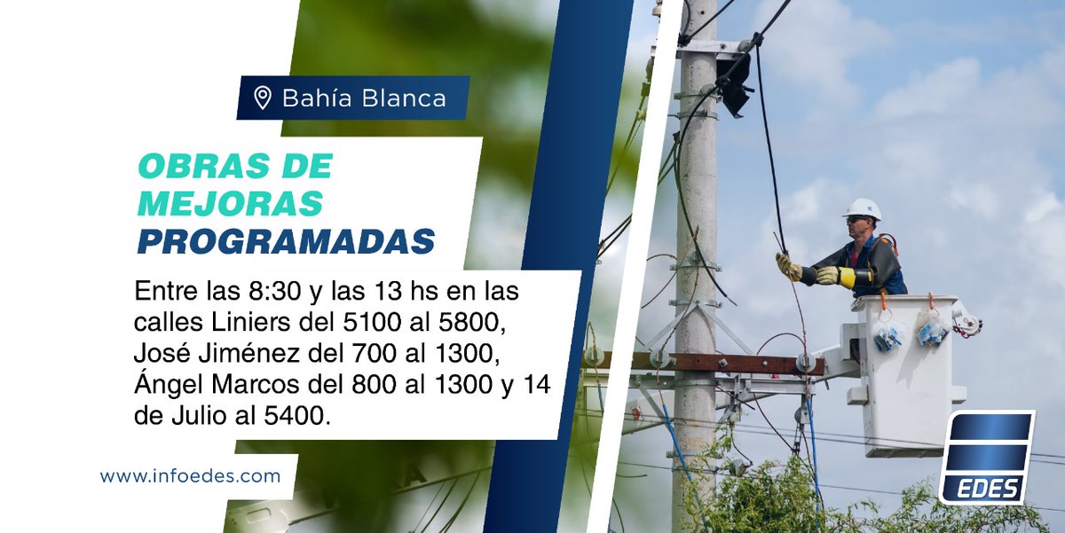 La empresa EDES anunció que realizará varios cortes de energía durante este viernes, por tareas de mantenimiento y mejoras.
