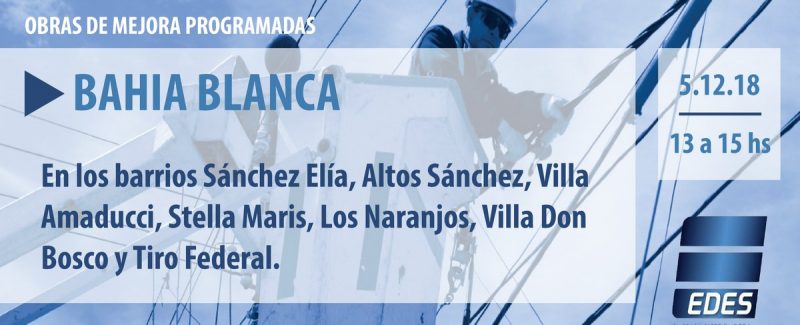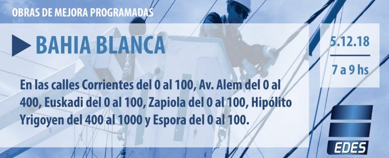 La empresa EDES anunció cuatro cortes de energía para el miércoles 5 de diciembre, por tareas de mejoras y mantenimiento.