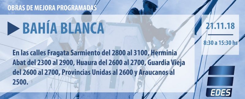 La empresa EDES anunción cinco cortes de energía para este miércoles 21 de noviembre, por tareas de mejoras y mantenimiento.
