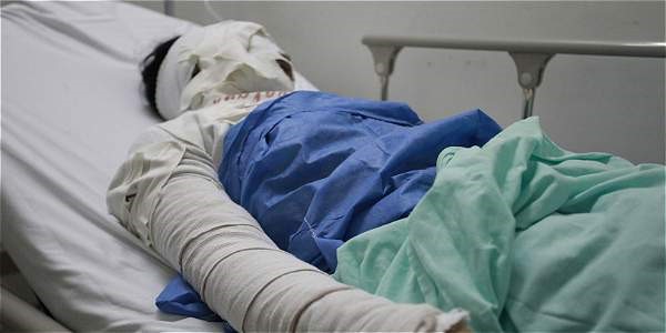 Objetivamente, fuentes policiales y un vecino indican que el hombre, desesperado, salió corriendo hacia el 7° piso, donde consiguió ayuda de una estudiante de medicina qué paró la profusa hemorragia. Esta mujer evitó la hipovolemia y le salvó la vida.