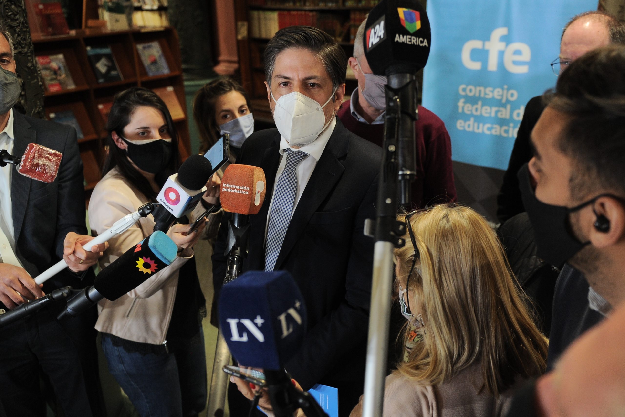 “Hemos tenido una reunión en la que hemos aprobado por mayoría, con el acompañamiento de 22 de las 24 jurisdicciones, los protocolos que permiten intensificar la presencialidad en el sistema educativo”, indicó Trotta tras encabezar la 109° asamblea del CFE en el Palacio Sarmiento.