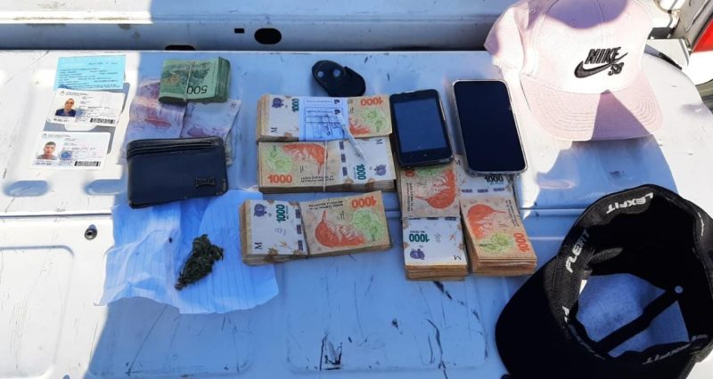 Luego de interceptarlos cuando se trasladaban en un Toyota Etios blanco, los efectivos policiales hallaron “un poco cantidad de marihuana, la suma de 450.000 pesos en efectivo, un inhibidor de señal de alarma de vehículos, dos celulares y varias prendas de vestir” en el rodado.