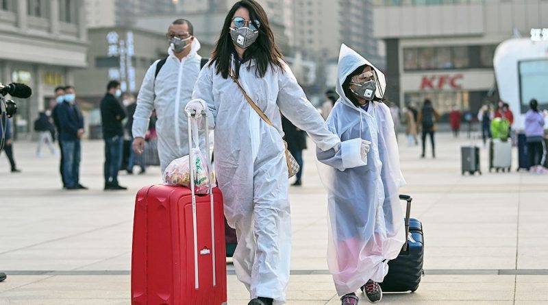 La emisora difundió imágenes de viajeros con tapabocas y policías equipados con trajes de protección integral controlando pasaportes.