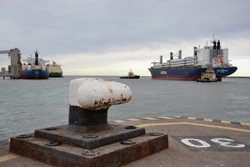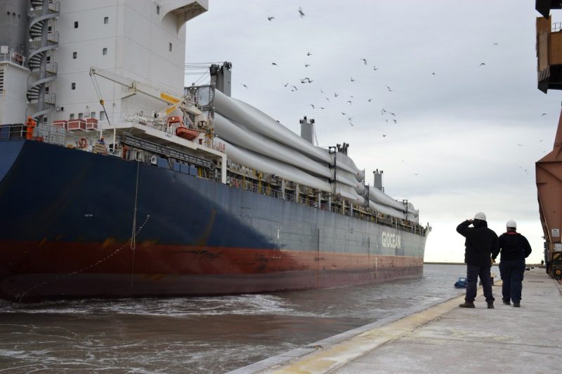 Arribó al puerto local un buque con piezas destinadas a nuevo parque eólico