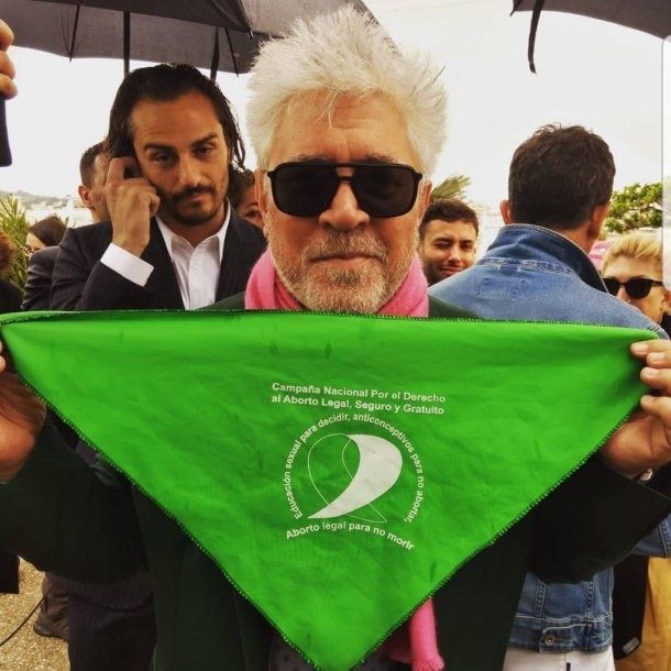 Pedro Almodóvar y Penélope Cruz, director y protagonista de “Dolor y gloria”, nuevo filme del cineasta español estrenado anoche en el Festival de Cine de Cannes, y cuya rueda de prensa se concretó este sábado, lucieron el pañuelo verde por la Campaña Nacional por el Derecho al Aborto Legal, Seguro y Gratuito con el que las militantes del espacio acompañan la proyección de “Que sea ley” documental del argentino Juan Solanas que se exhibirá este sábado.