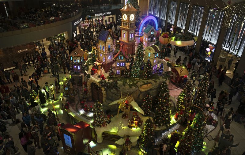 La gente recibió la Navidad en un centro comercial en Hong Kong