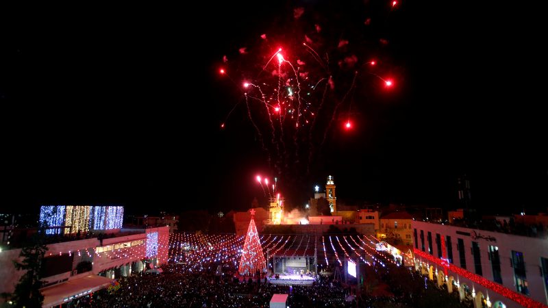 Fuegos artificiales por la llegada de la Navidad en la ciudad de Belen