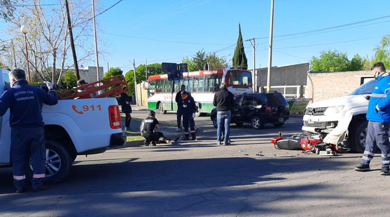 Un joven de 20 años fue asistido por una ambulancia del servicio Siempre luego de chocar la moto que conducía con una camioneta en 14 de Julio y D’orbigny.