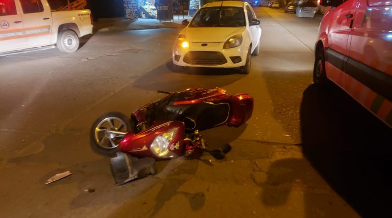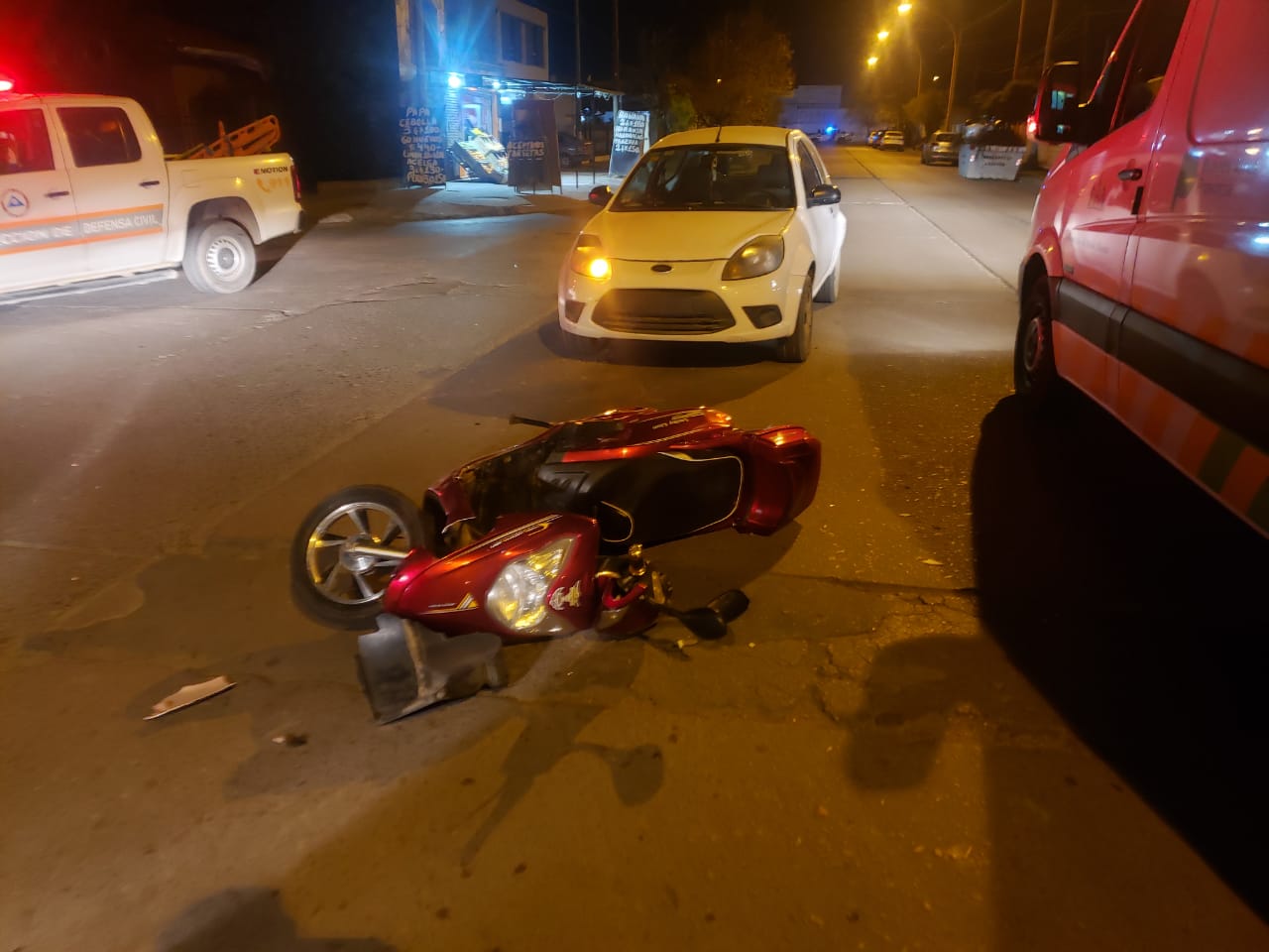 Un hombre de 70 años que conducía una moto eléctrica fue asistido este martes por los golpes que sufrió luego de chocar con un auto.