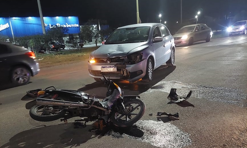 El choque involucró a un automóvil Volkswagen Gol Trend, conducido por una mujer de 40 años, y una motocicleta Guerrero Trip 110cc, manejada por un hombre de 31 años.
