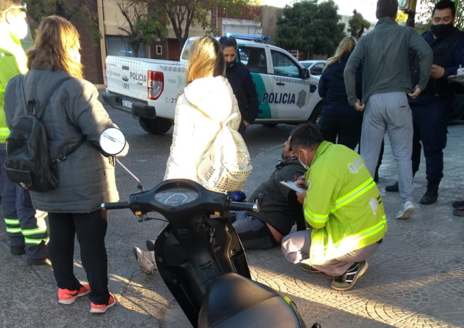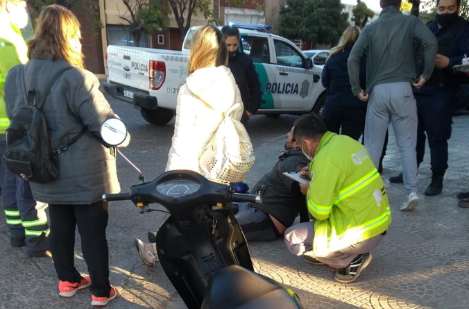 Un hombre sufrió algunos golpes este sábado, alrededor de las 16:45, luego de colisionar la moto que conducía con auto en la esquina de Brasil y Estomba de esta ciudad.