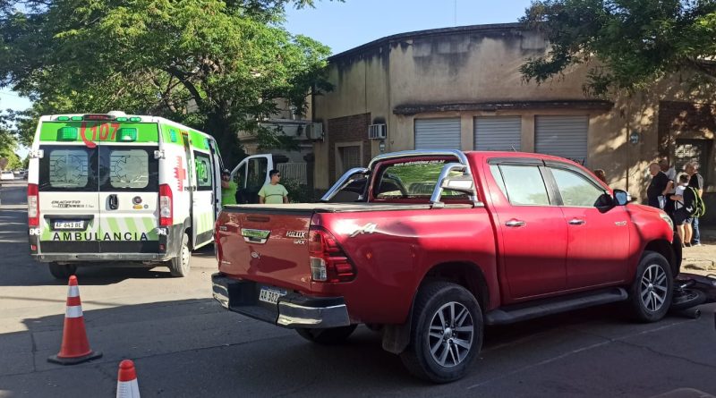 Una camioneta y una moto colisionaron esta tarde en Almafuerte y Holdich, informaron fuentes oficiales.