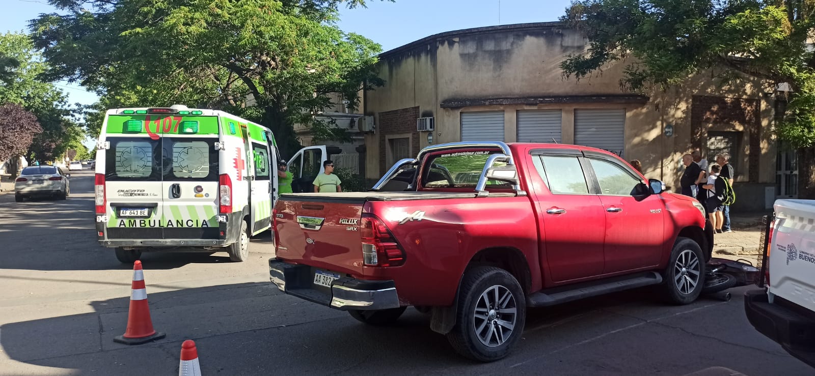 La motociclista más joven sufrió traumatismo de clavícula con posible fractura y fue trasladada al Hospital Municipal por una ambulancia del servicio Siempre.