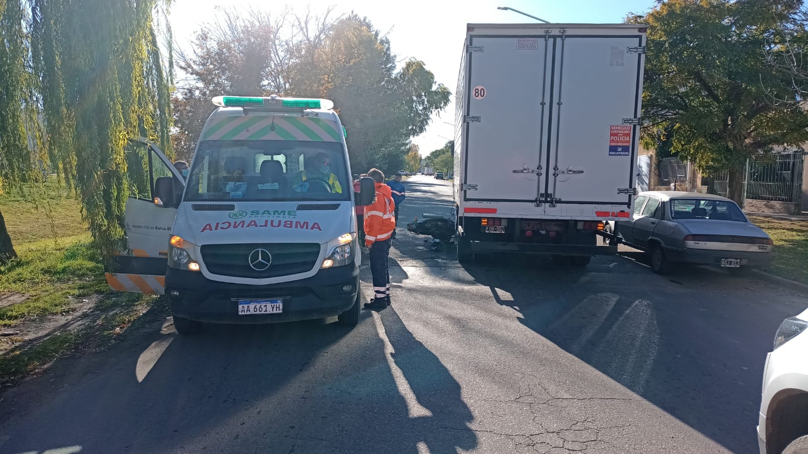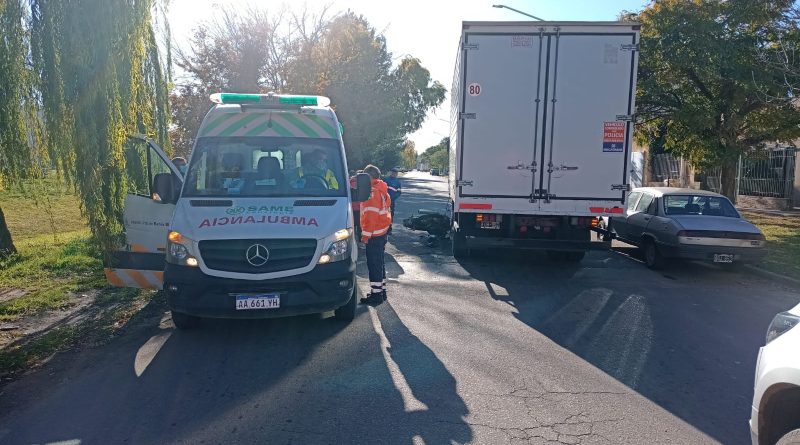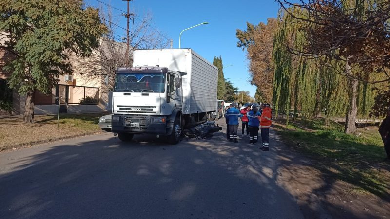 Un camión y una moto colisionaron este martes, alrededor de las 10:50, en Cuyo 611.