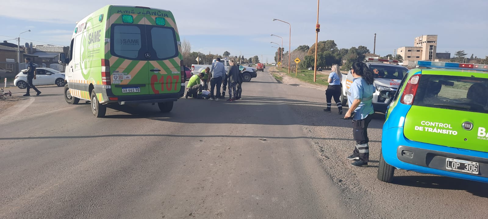 Una mujer de 60 años que circulaba en bicicleta por avenida Juan Manuel de Rosas y San Lorenzo habría sido embestida por un auto y sufrió un traumatismo de cadera, lo que motivó su traslado a un hospital por una ambulancia del servicio Siempre.