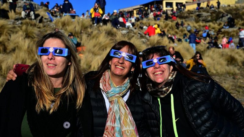 Otros cordobeses y visitantes que llegaron a esa provincia para mirar el fenómeno astronómico se las ingeniaron para crear sus propias pantallas y filtros para evitar lesiones oculares.
