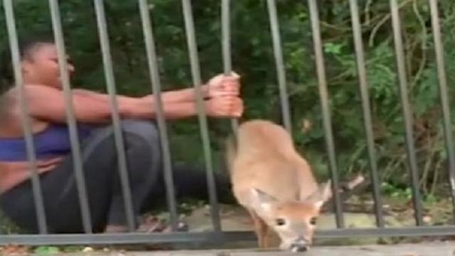 Una atleta estaba corriendo por el parque natural Stone Mountain en el distrito estadounidense de Georgia, cuando interrumpió su rutina para rescatar dos veces a un ciervo que había quedado atrapado en diferentes rejas.