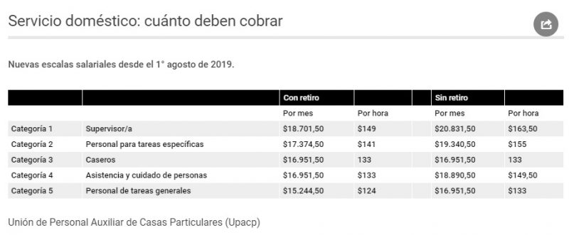 En ese entonces, la Unión Auxiliar de Casas Particulares (Upacp), el sindicato del sector, se aseguró un incremento para el personal doméstico del 30 por ciento en tres tramos, con una cláusula de revisión en febrero de 2020.