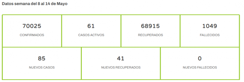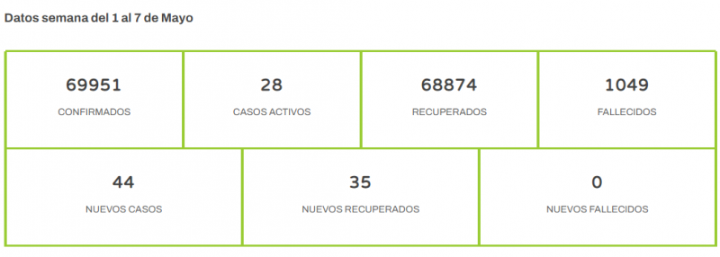 La semana anterior (del 1 al 7 mayo) se habían registrado 44 nuevos casos, 35 recuperados y 28 activos.