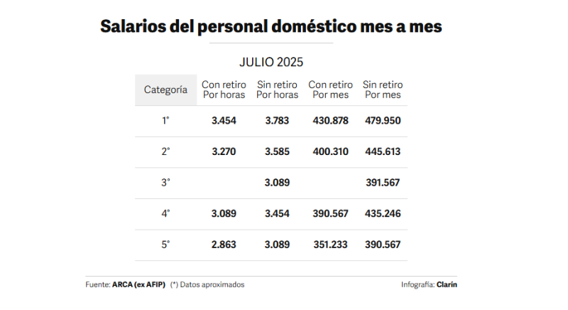 La Comisión Nacional de Trabajo en Casas Particulares selló un nuevo acuerdo salarial desglosado en 3,5% sobre los salarios de enero 2025, y tres aumentos de 1% para julio, agosto y septiembre.