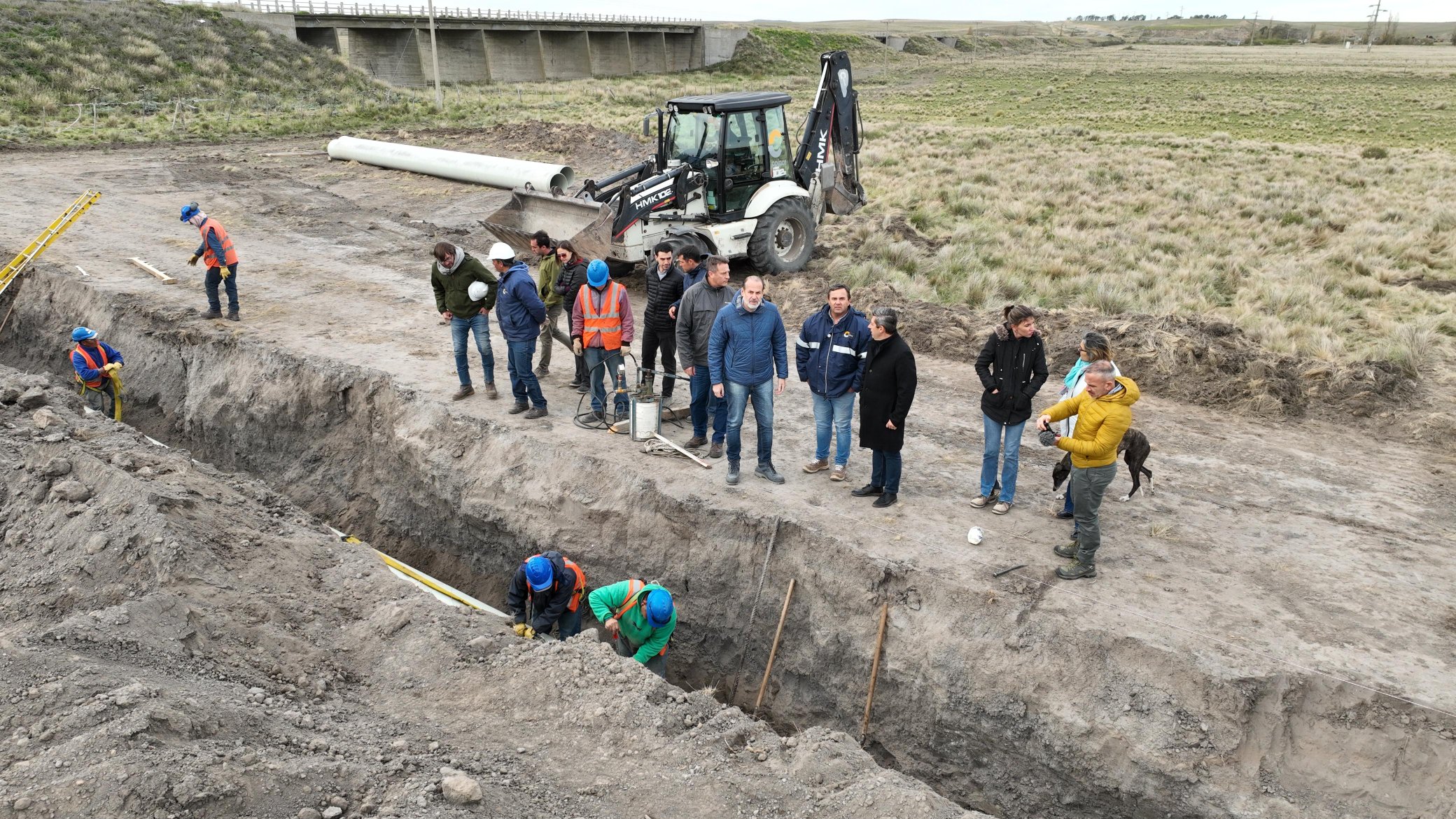 El intendente Federico Susbielles y el subsecretario de Recursos Hídricos de la provincia de Buenos Aires, Néstor Álvarez, recorrieron la obra de recambio de cañerías del acueducto que va desde el Dique Paso de las Piedras hasta Grünbein.