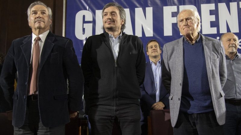 Los precandidatos presidenciales del PJ Agustín Rossiy Felipe Solá, el diputado Máximo Kirchner y otros referentes del peronismo dieron el presente este jueves en un acto convocado por el senador nacional Fernando “Pino” Solanas, quien impulsa un frente “patriótico” de cara a octubre.