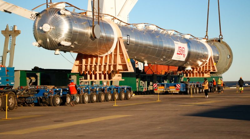 Esta columna, con una longitud de 50 metros y un peso de 200 toneladas, permitirá fraccionar el gas proveniente de Vaca Muerta convirtiéndolo en productos como etano, propano, butano y gasolina natural.