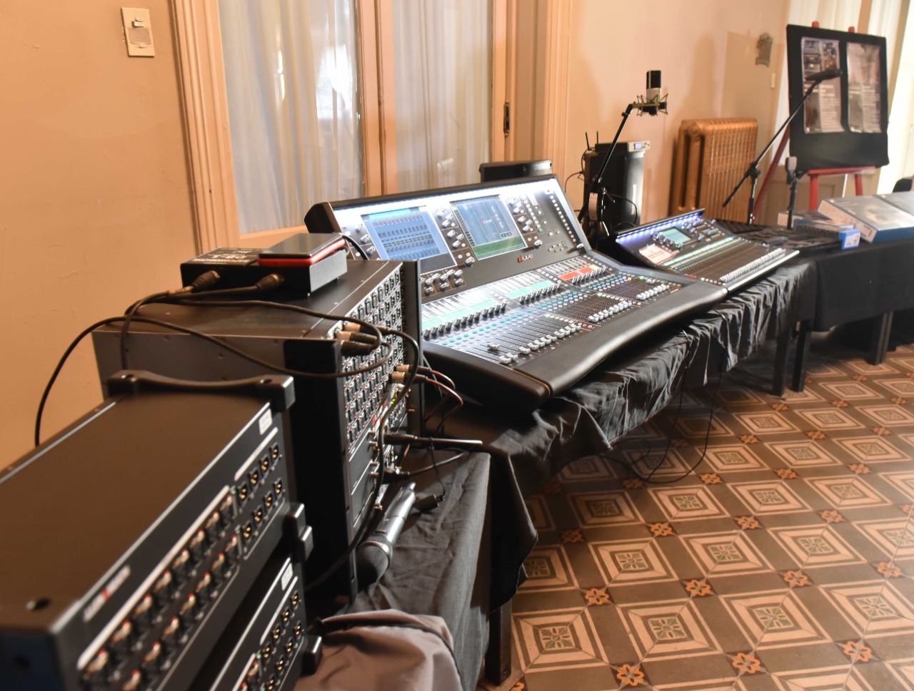 Está compuesto por 2 consolas digitales marca ALLEN&HEATH D LIVE y SQ-7 con sus respectivos racks, un lote de micrófonos de diversas características marca líder en el mercado, que permitirán una mejor respuesta a la variedad de espectáculos (45 micrófonos SENNHEISER, 6 puestos INTERCOM profesionales, 8 micrófonos inalámbricos SENNHEISER y 70 pies de micrófonos SENNHEISER / RODE).