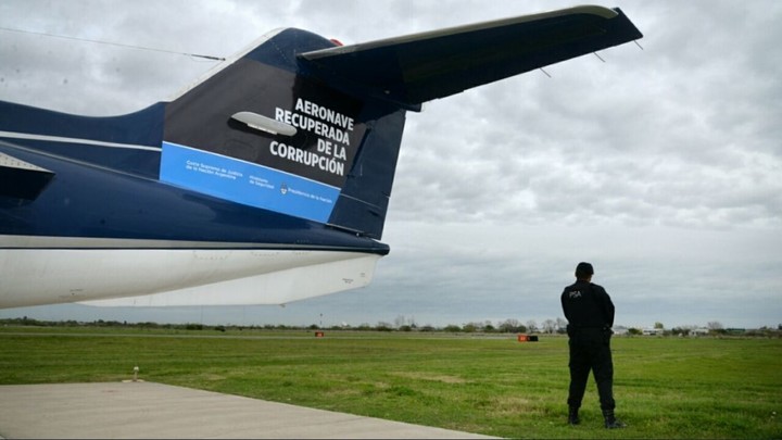 “Aeronave recuperada de la corrupción”. La ministra de Seguridad, Patricia Bullrich, entregó hoy la avioneta confiscada al empresario detenido Lázaro Báez a la Policía Federal Argentina para que sea utilizada en la lucha contra el delito. Se trata del avión privado –un Lear Jet 35 LV-BPL– que utilizaba Báez cuando fue detenido en el aeropuerto de San Fernando en abril de 2016.