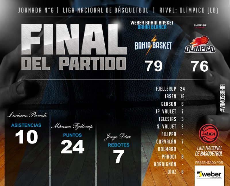 Weber Bahía Basket le ganó este miércoles en la última bola del partido a Olímpico de La Banda por 79-77.