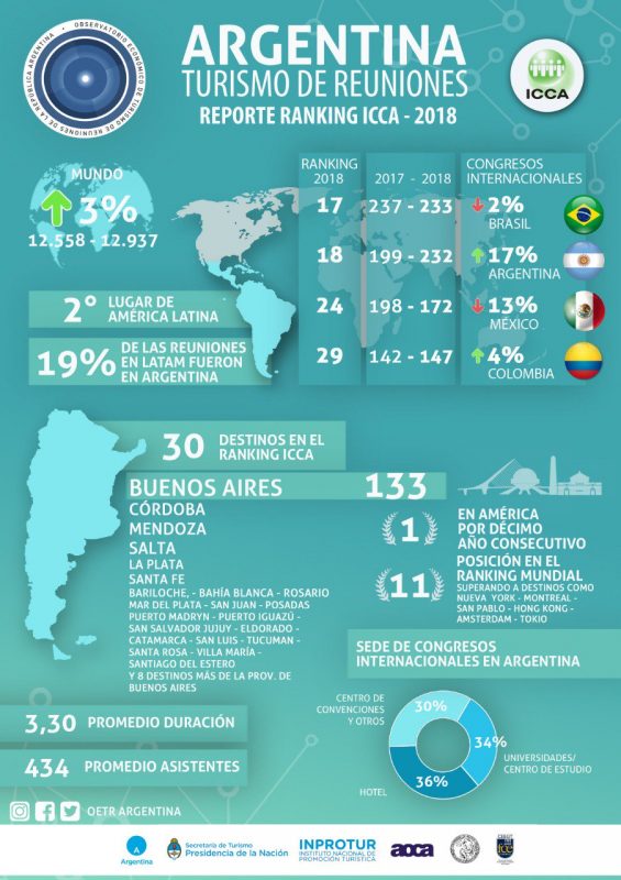La Asociación Internacional de Congresos y Convenciones ICCA dio a conocer su informe global referido al ranking de países y ciudades que han sido sedes de reuniones internacionales durante el 2018.