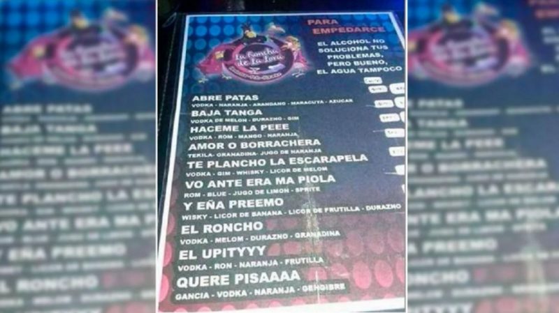 Un bar de Salta ofrece a sus clientes tragos que con nombres polémicos y generó el repudio de las mujeres en las redes sociales.