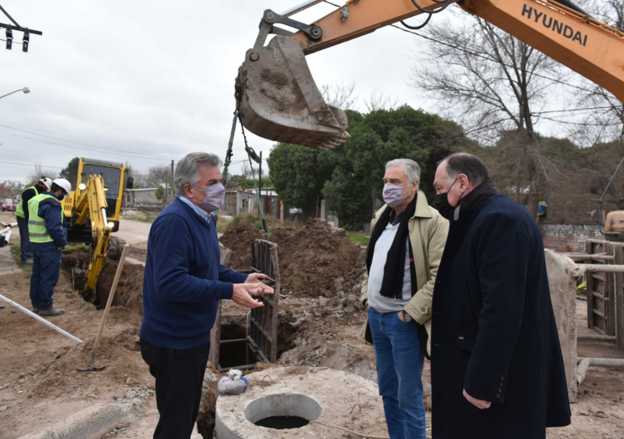 El intendente Héctor Gay recorrió los trabajos que posibilitarán la extensión de la red de desagües cloacales en el barrio Thompson con una inversión de 47 millones de pesos.