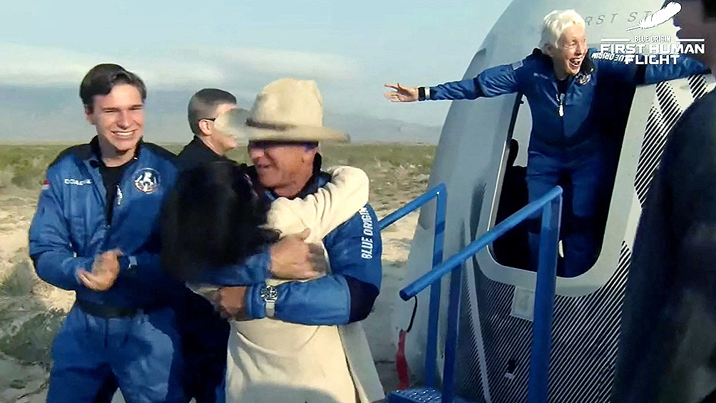 Durante poco más de diez minutos, el empresario estadounidense y los otros tres tripulantes -su hermano Mark, una aviadora de 82 años y un joven de 18-, cruzaron el límite de Karman, una frontera imaginaria que separa la atmósfera terrestre y el espacio exterior a bordo de la nave reutilizable, la New Shepard.