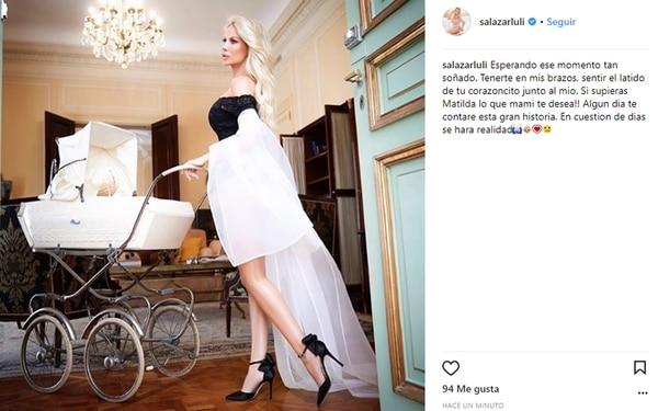 “Esperando ese momento tan soñado. Tenerte en mis brazos, sentir el latido de tu corazoncito junto al mío. Si supieras Matilda lo que mami te desea. Algún día te contaré esta gran historia. En cuestión de días se hará realidad”, escribió luego la rubia.