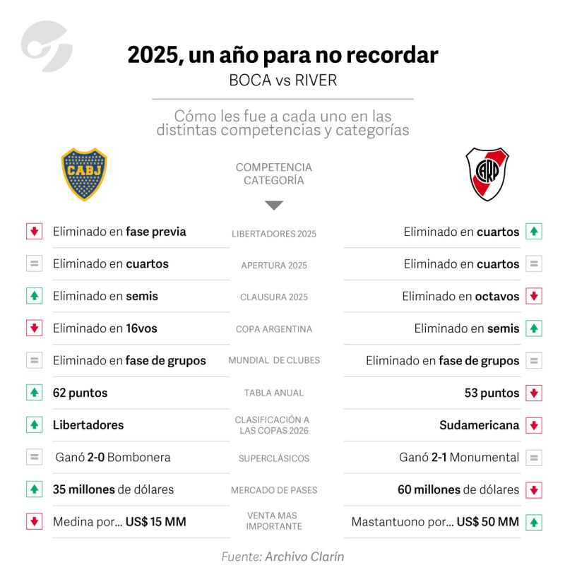 No sucedía desde 2013. Hacía 12 años que River y Boca no ganaban ningún campeonato ni uno ni otro. Y este 2025 quedaron expuestos a un rotundo fracaso deportivo.