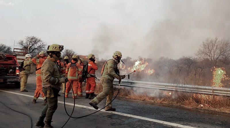 “Admirable la tarea de Bomberos voluntarios que luchan contra las llamas en los diferentes focos que afectan a la provincia de Córdoba”, expresó el Ministerio de Seguridad local en la cuenta oficial de Twitter, junto a un video a la vera de la ruta E34 donde se observa el despliegue de los efectivos.