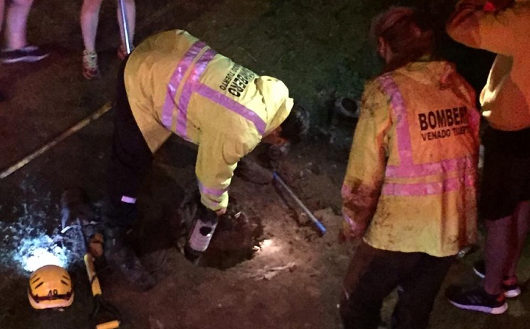 Debido al poco diámetro del tubo no era posible sacar a los animales, por lo que fue necesario romper una sección con palas, maza y rotomartillo eléctrico.