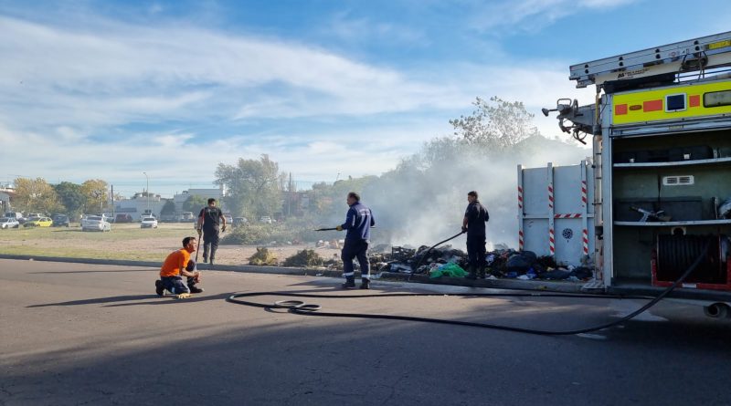 Los bomberos del Cuartel Central y la guardia de Defensa Civil debieron trabajar para sofocar un incendio de basura que se registró en calle Montevideo, en el descampado detrás de la bodega Arizu.