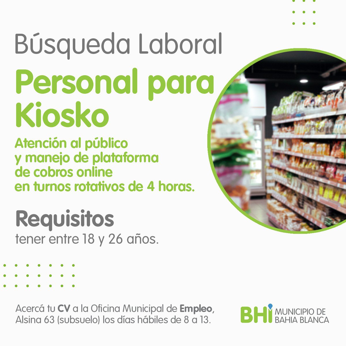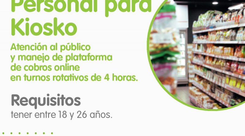 Se busca personal para atención en kiosco y manejo de plataforma de cobros online.