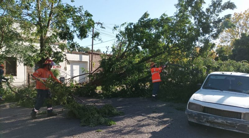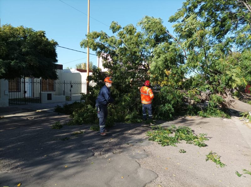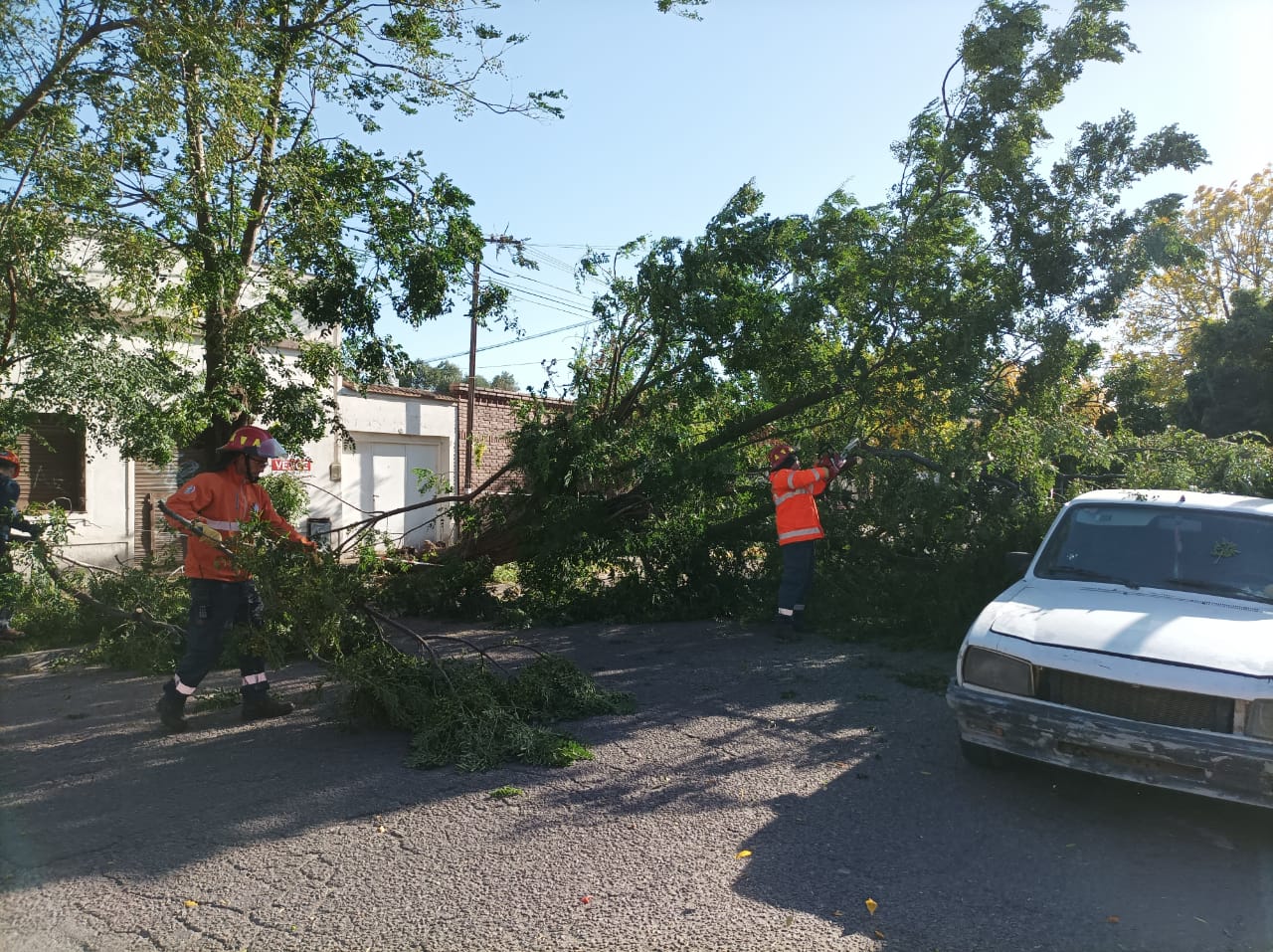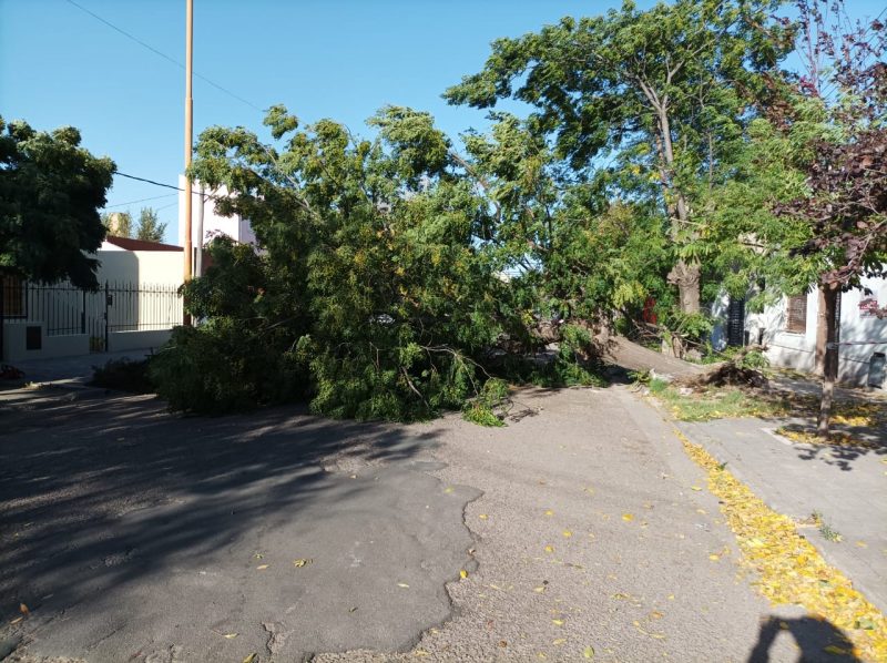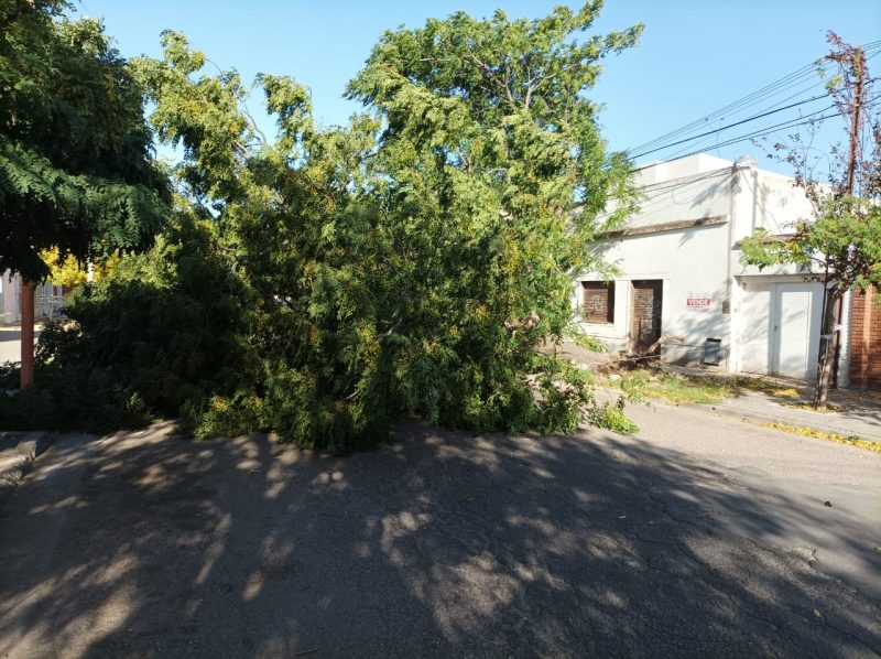 Defensa Civil debió actuar este sábado para retirar un árbol que se cayó en Martín Rodríguez 660 por el fuerte viento que se registra en la ciudad.