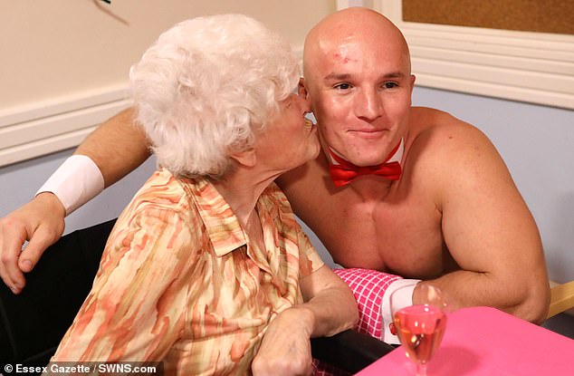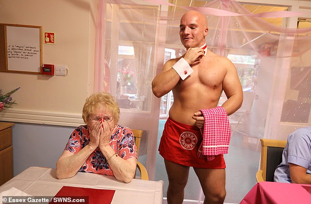 Musculosos empleados de “Hunks in Trunks”, vestidos apenas con delantales, atendieron a las 11 residentes del ancianato. A cada una les llevaron tres platos de comida e hicieron un masaje.