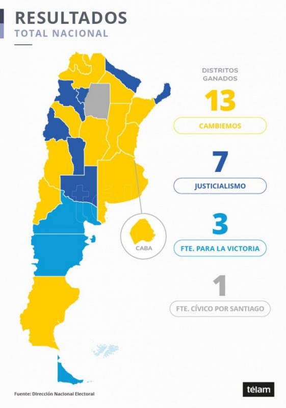 En tanto, de los triunfos alcanzados por Cambiemos en doce provincias, siete de ellos fueron derrotas para los oficialismos provinciales: Córdoba, Salta, Chaco, Entre Ríos, Neuquén, Santa Cruz y Santa Fe.