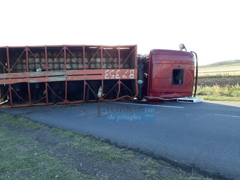 Un camionero bahiense sufrió heridas leves al volcar su camión con hacienda en el kilómetro 652 de la ruta 51, en cercanías al establecimiento Las Águilas.